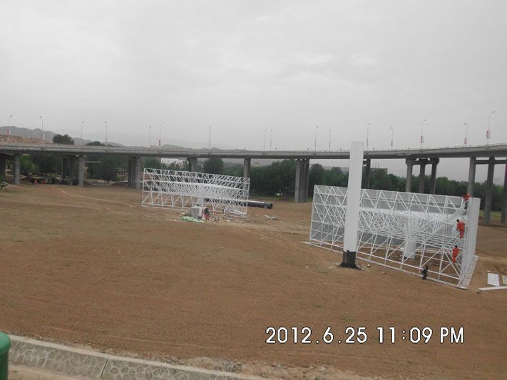热烈庆祝我公司于青海省西宁市曹家堡机场环岛内承建的7×21米三面体高炮顺利竣工!该高炮头部采用全拆装螺旋球结构造型美观抗风性强!